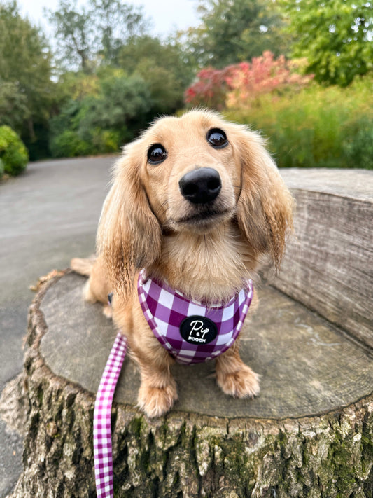 Adjustable Dog Harness - Purple Gingham