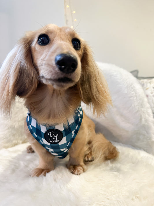 Adjustable Dog Harness - Dark Teal Gingham